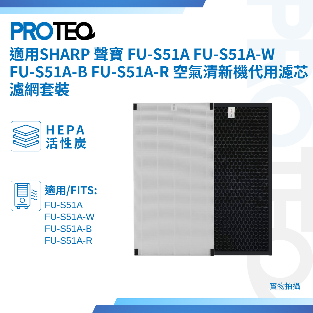適用SHARP 聲寶 FU-S51A FU-S51A-W FU-S51A-B FU-S51A-R 空氣清新機代用濾芯濾網套裝